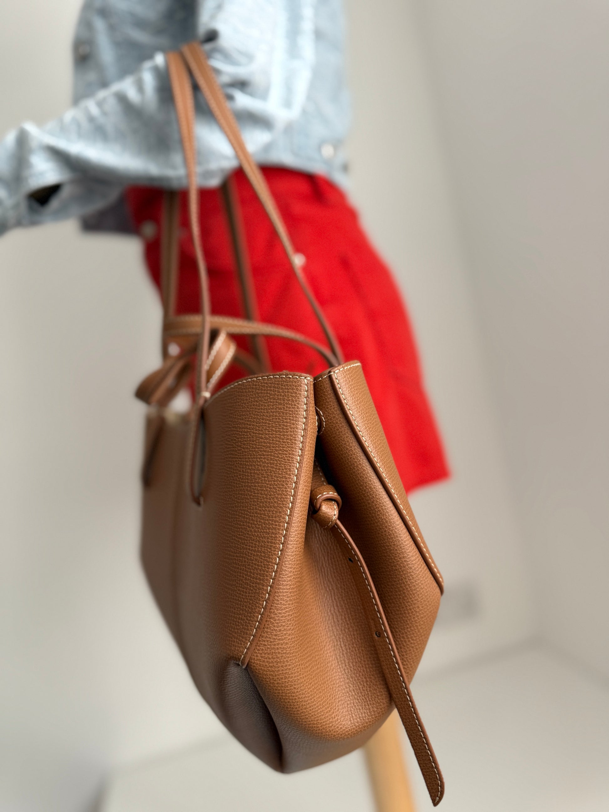 A mini tote, the Cyme Mini is perfect for carrying daily essentials while exuding elegance. This listing is for the Camel colourway; only one unit available.